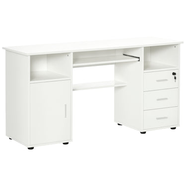 HOMCOM 57" Computer Desk with Drawers, Home Office Desk with Keyboard Tray, Open Shelves and Lockable Drawer, Writing Workstation for Study, Black