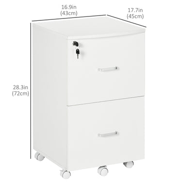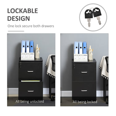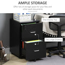 Vinsetto 2 Drawer Mobile File Cabinet with Lock, Wood Office Filing Cabinet with Locking Wheels for Letter and A4 Size, Black