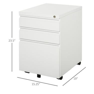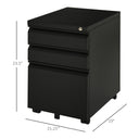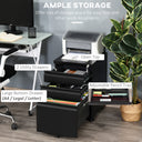 Vinsetto 3 Drawer Filing Cabinet, Lockable Office Storage Cabinet on Wheels for Legal, Letter, A4 Files, Black