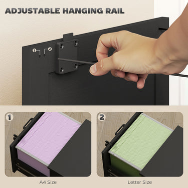- • Adjustable hanging rail in each drawer accommodates A4 and letter file sizes