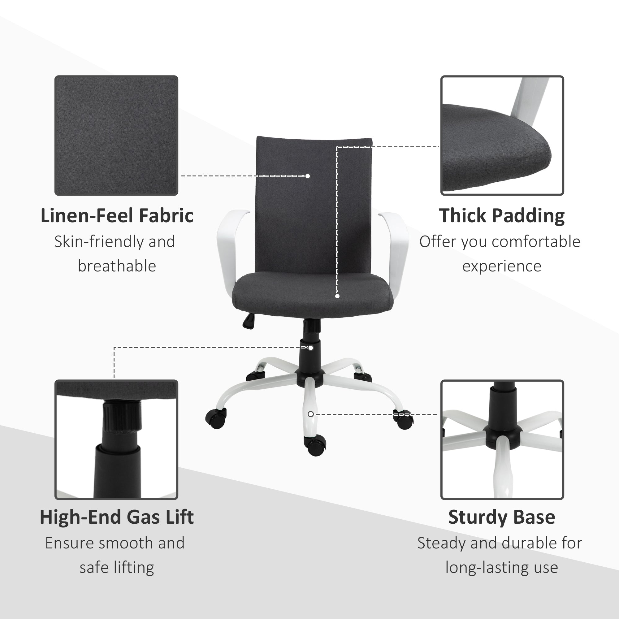Vinsetto Linen Mid Back Office Chair With Tilt Function, Swivel Computer Chair, Charcoal Grey