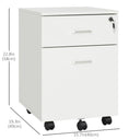 Vinsetto 2 Drawer File Cabinet with Lock and Keys, Mobile Vertical Filing Cabinet with Wheels and Drawers, Home Office Cabinet, White