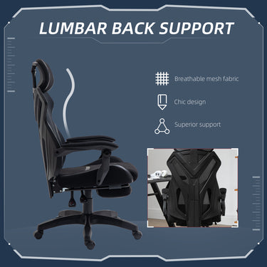 Elevate your office experience with Vinsetto's comfortable office chair, designed for prolonged use. It features ergonomic contours, thick padding, and breathable mesh fabric for optimal support and comfort. Customize your sitting position with adjustable seat and armrest heights, and effortlessly glide across the office with the swivel wheels on the racing gaming chair with footrest.
