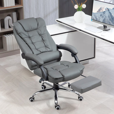 Kick comfort into high gear with this high back office chair with retractable footrest from HOMCOM. It allows you to get comfortable and stay productive for the best of both worlds. Thanks to its quality materials, it helps to maintain a correct and comfortable posture for those who must remain seated at the desk for several hours. Sit back and relax like an executive in style with this modern designed HOMCOM desk chair with wheels.