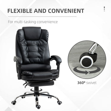 HOMCOM High Back Office Chair PU Leather Executive Office Chair with Retractable Footrest Padded Armrest Black