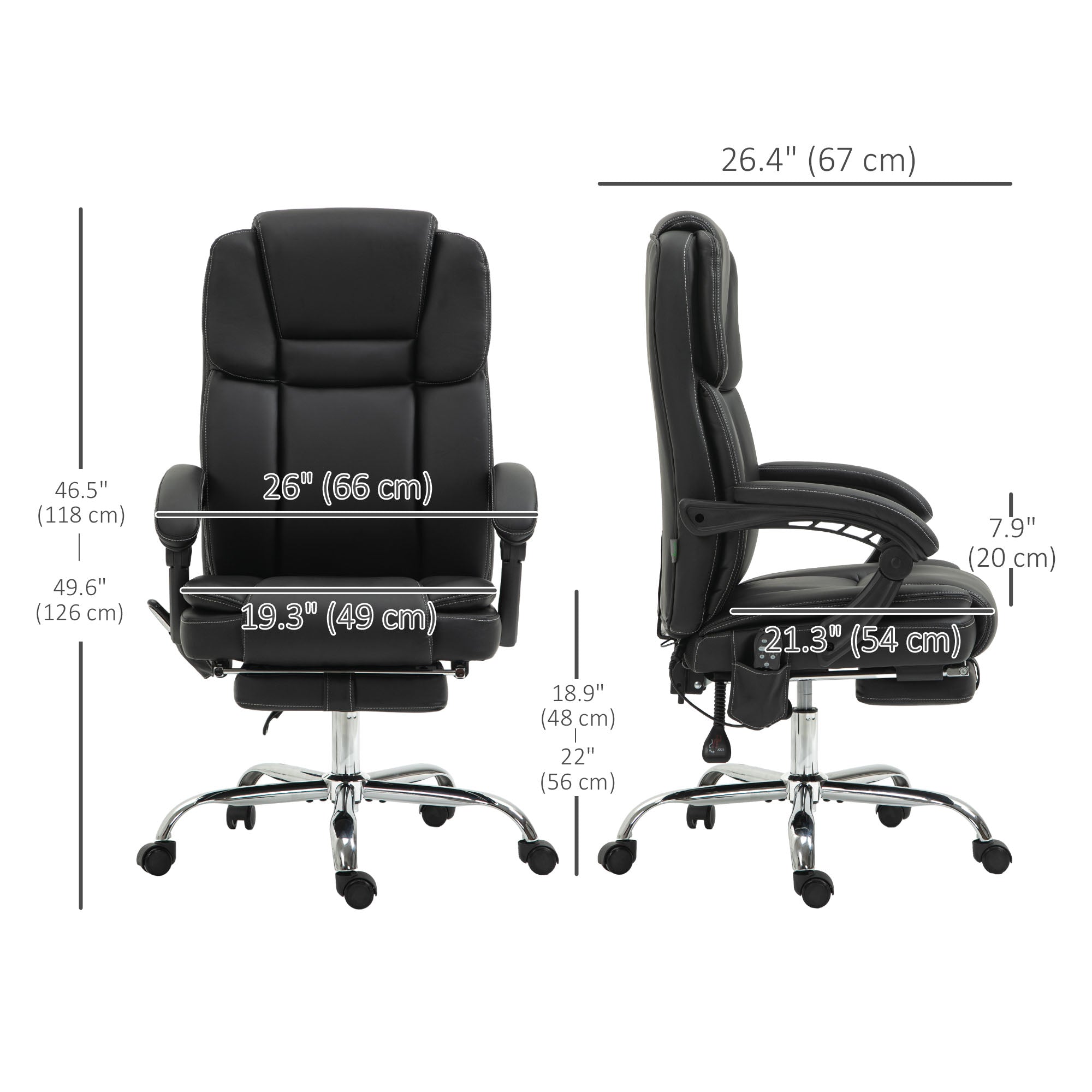 - • Overall Dimensions: 26" W x 26.4" D x 46.5" - 49.6" H (66 x 67 x 118-126 cm)