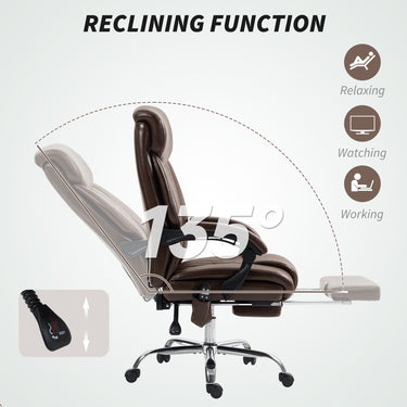 Long workdays often end with an aching back and shoulders, making it hard to stay focused. This HOMCOM office chair transforms your workday into a comfortable experience. Feel tension dissolve with a six-point massage, or recline up to 135° with the footrest for a revitalizing break. Its ergonomic design provides continuous support, transforming your desk chair into a personal retreat that enhances productivity and well-being.