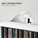 Transform your home with the HOMCOM CD storage shelf. Designed for convenience and style, this DVD rack features 8 compartments with 6 adjustable shelves, fitting up to 360 CDs, 185 DVDs, or 185 Blu-rays. Its strong particleboard frame and anti-tipping strap provide stability, while its compact design saves space. Keep your collection organized and accessible with this stylish media shelf.