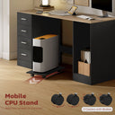 HOMCOM Office Desk, 55" Computer Desk with 4 Reversible Drawers, Mobile PC Stand, Adjustable Shelf, Black Wood Grain
