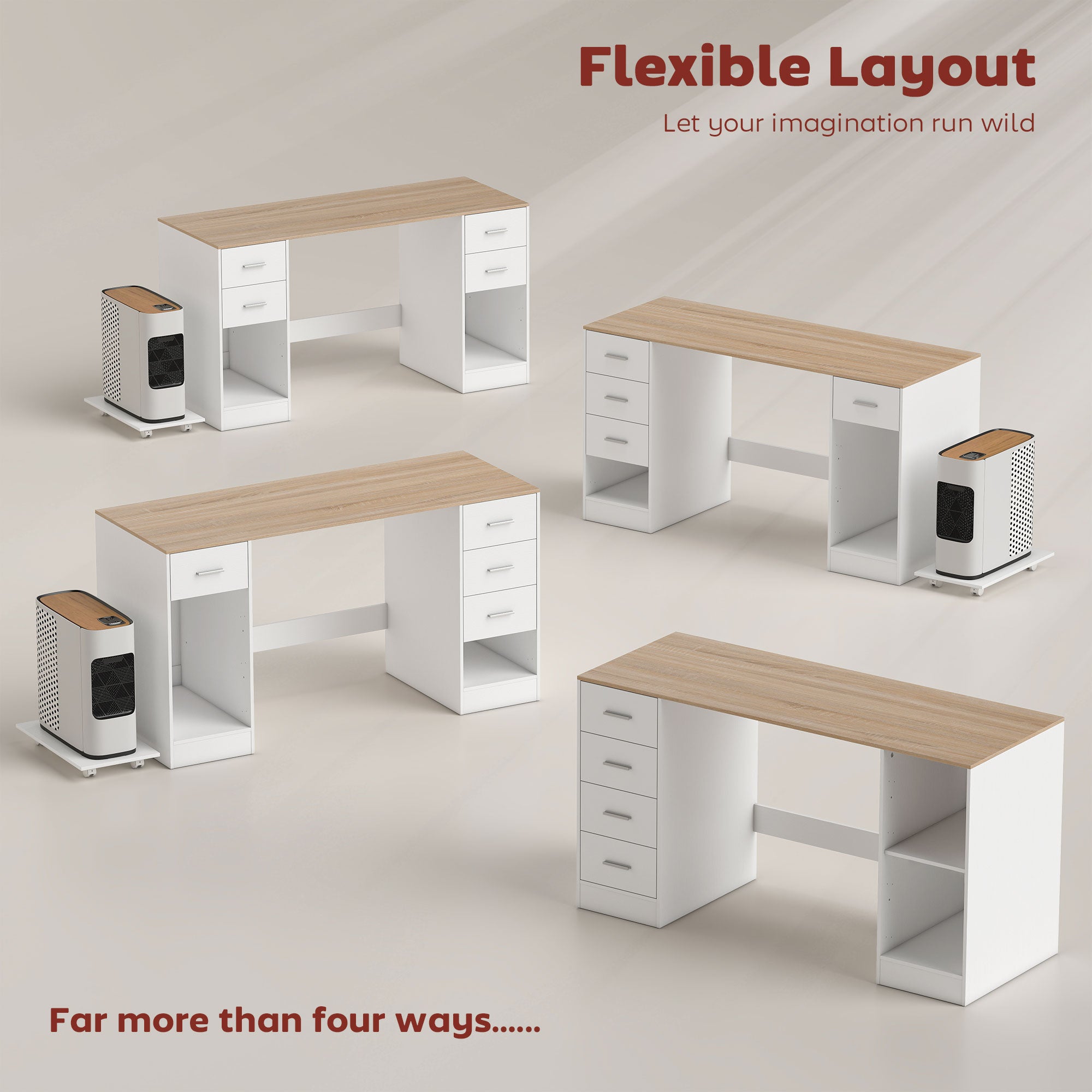 Struggling with a cluttered workspace that stifles your productivity? A cramped, inflexible setup can make even simple tasks feel chaotic. This HOMCOM computer desk transforms your experience. Its spacious top holds all your gear, while four drawers, configurable to the left or right, adapt to your room's layout. Finally, an office desk that brings organization and a sense of calm to your day, enhancing your focus and workflow.