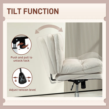 Discover the comfort of the HOMCOM armless study chair, where style meets functionality. Its criss-cross design and wide seat, upholstered in breathable microfiber cloth with high-density foam padding, ensure a cozy sitting experience. Rock or tilt effortlessly for a personalized comfort zone, great for any task at your computer desk. Suitable for any study or work setup!