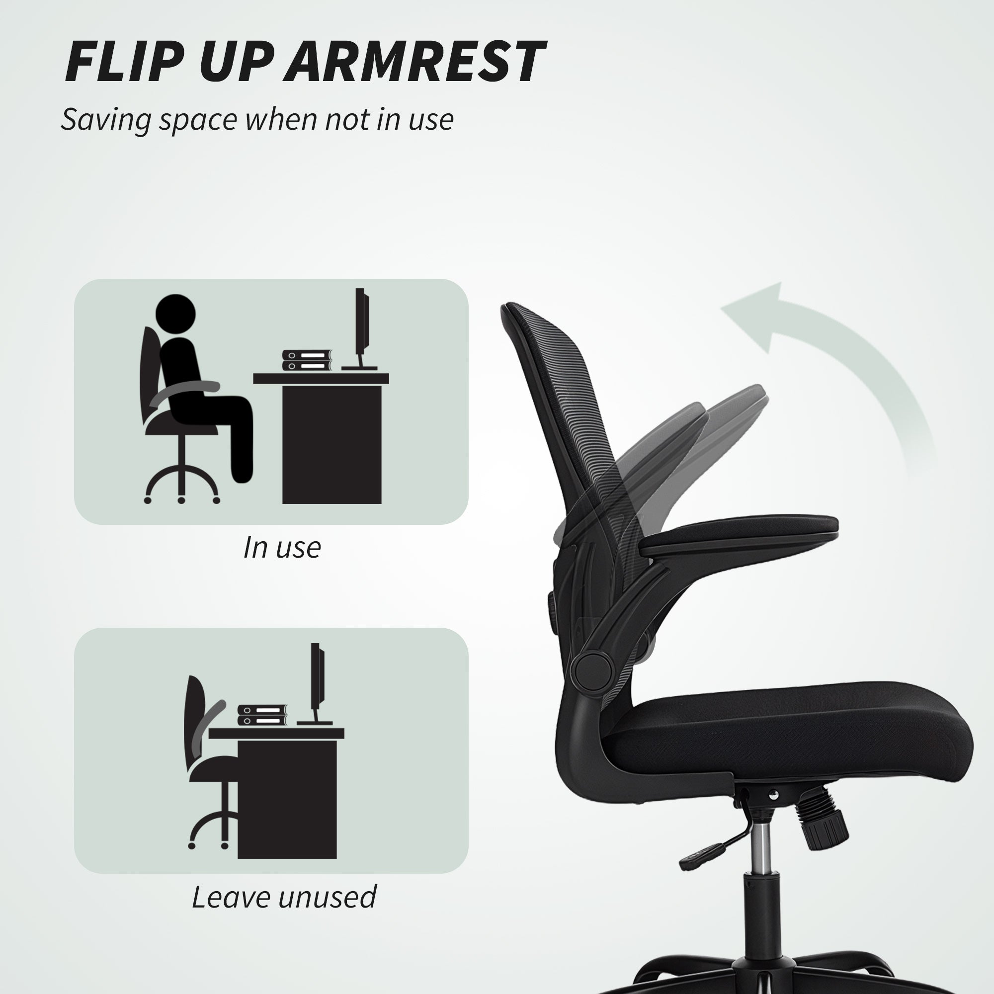 Tired of back pain and a cluttered workspace after a long day? That constant discomfort and lack of space can drain your focus. The HOMCOM office chair offers a solution. Its dynamic lumbar support moves with you, providing a secure feeling, while flip-up arms let this desk chair slide neatly away. A breathable mesh back and foam cushion keep you refreshed, transforming your work area into a haven of comfort and order.