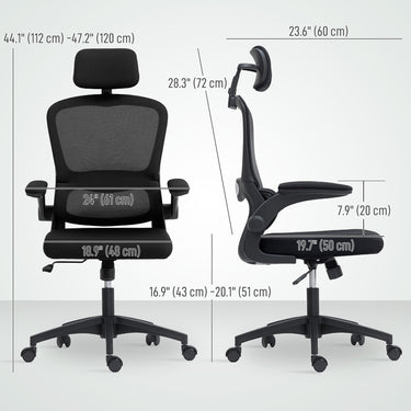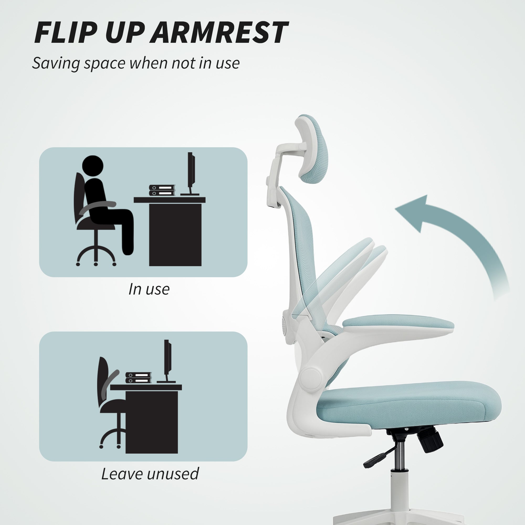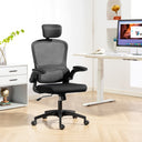 HOMCOM Ergonomic Mesh Office Chair, High Back Desk Chair with Rotatable Headrest, Flip-Up Armrests, Lumbar Support, Grey