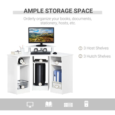 Do you ever feel as if there isn't enough space? The HOMCOM L-shaped corner desk has been specifically designed to maximise space utilisation. It makes full use of corner space, which is overlooked in daily life. When combined with an elevated monitor stand, three host positions, and three hutch shelves, the computer desk can meet all of your storage needs while working or studying. With this unique computer desk, you can create a stylish workstation, storage unit, and display case.