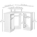 HOMCOM 35" L-Shaped Computer Desk with Monitor Stand and Open Shelves, Home Office Corner Desk Study Workstation for Small Space, White