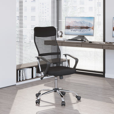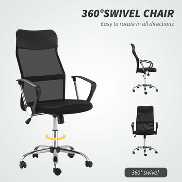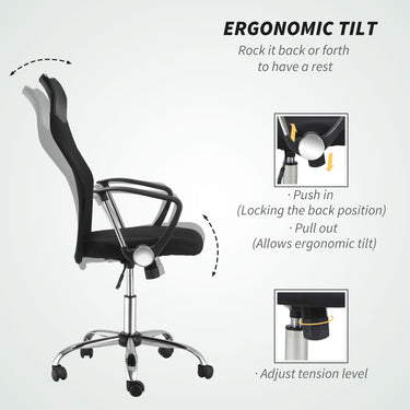 HOMCOM Ergonomic Mesh Office Chair, High Back Computer Desk Chair with Adjustable Height, Tilt Function, Armrest, 360° Swivel for Home Office, Black