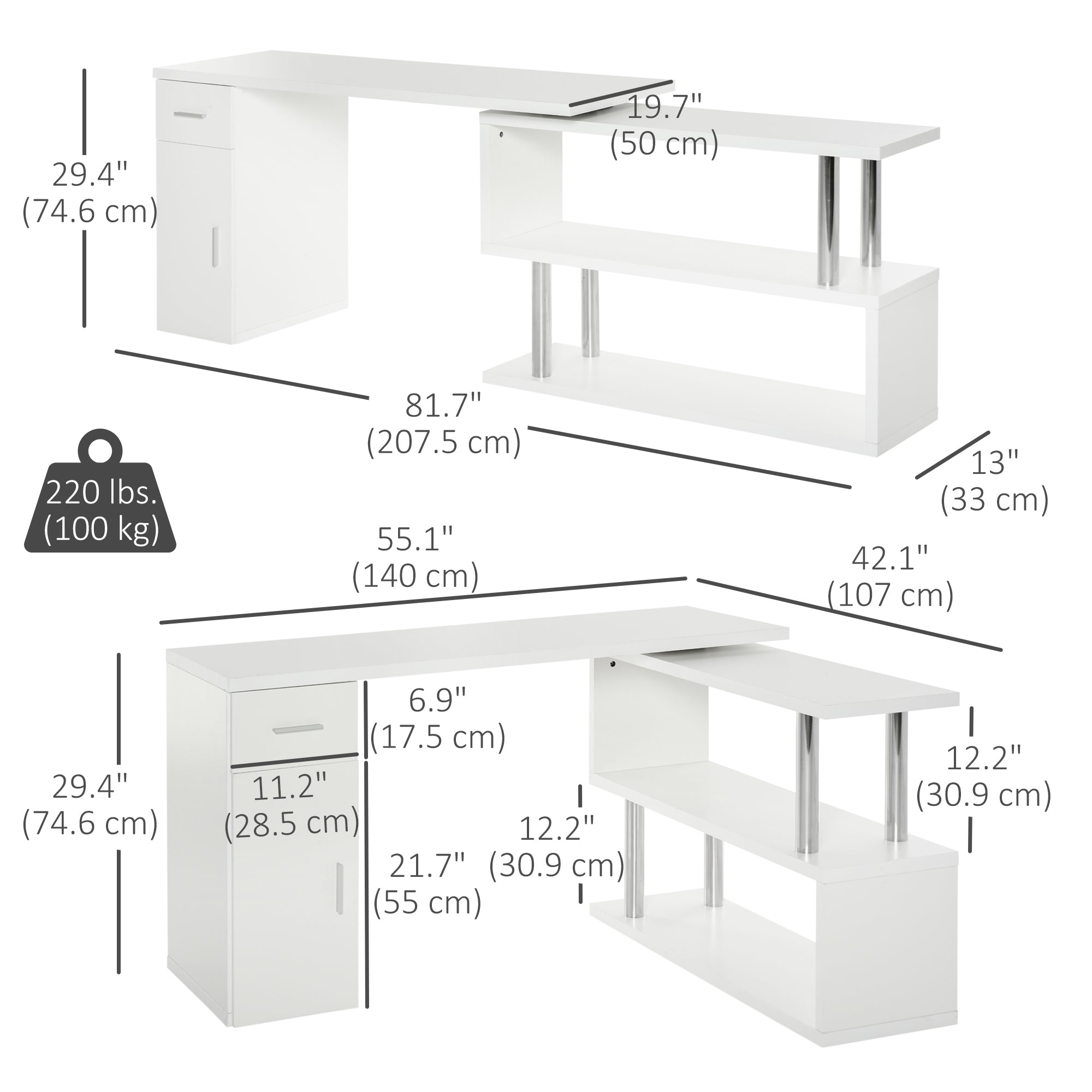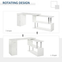 HOMCOM L-Shaped Rotating Computer Desk Home Office Study Workstation with Storage Shelves, Cabinet and Drawer for Home & Office, White