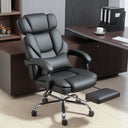HOMCOM PU Leather Office Chair, Reclining Desk Chair with Footrest, Adjustable Headrest, Lumbar Support, Swivel Wheels, Black