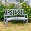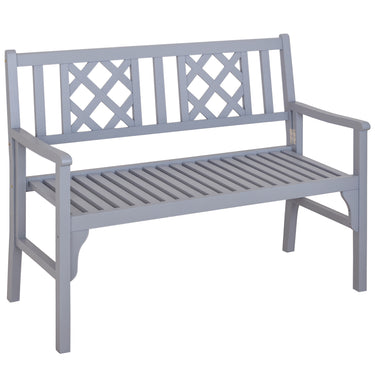 Outsunny Foldable Garden Bench, 2-Seater Patio Wooden Bench, Loveseat Chair with Backrest and Armrest for Patio, Porch or Balcony, Grey
