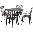 Outsunny 5 Pieces Outdoor Dining Set, Cast Aluminium Patio Table and Chairs with Parasol Hole, Patio Dining Set for 4, Brown