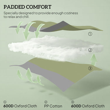 - • 600D Oxford cloth with PP cotton filling for soft and breathable sitting