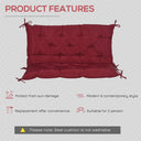 Outsunny Porch Swing Cushion Garden Bench Cushion with Backrest, Non-Slip 2-Seater Thick Pad, Swing Chair Mat Replacement for Indoor and Outdoor, 39.4" x 38.6", Wine Red