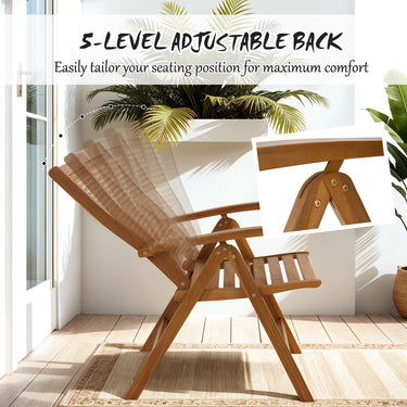 Discover the convenience of the Outsunny Folding Beach Chair, your go-to foldable chair for any outdoor adventure. Adjust the back to your liking with 5-level settings, and revel in the ease of its lightweight, portable design. Crafted from solid acacia wood and featuring a stylish PE rattan back, this folding lawn chair is your ticket to comfortable seating anywhere from the beach to the campground.