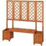 Outsunny Wood Outdoor Bench with Trellis for Climbing Plants and 2 Planter Boxes Garden Planter with Bench Privacy Panel Brown