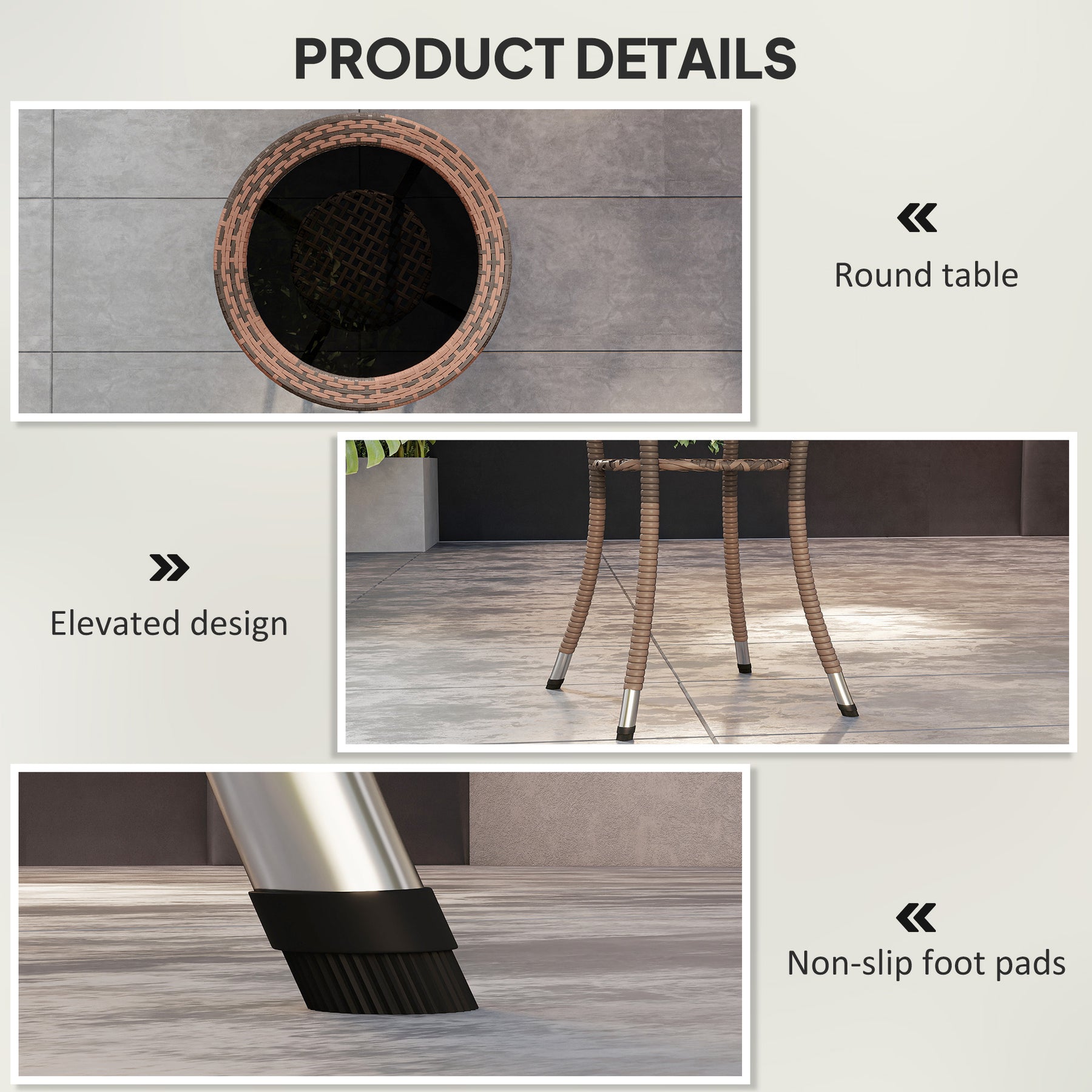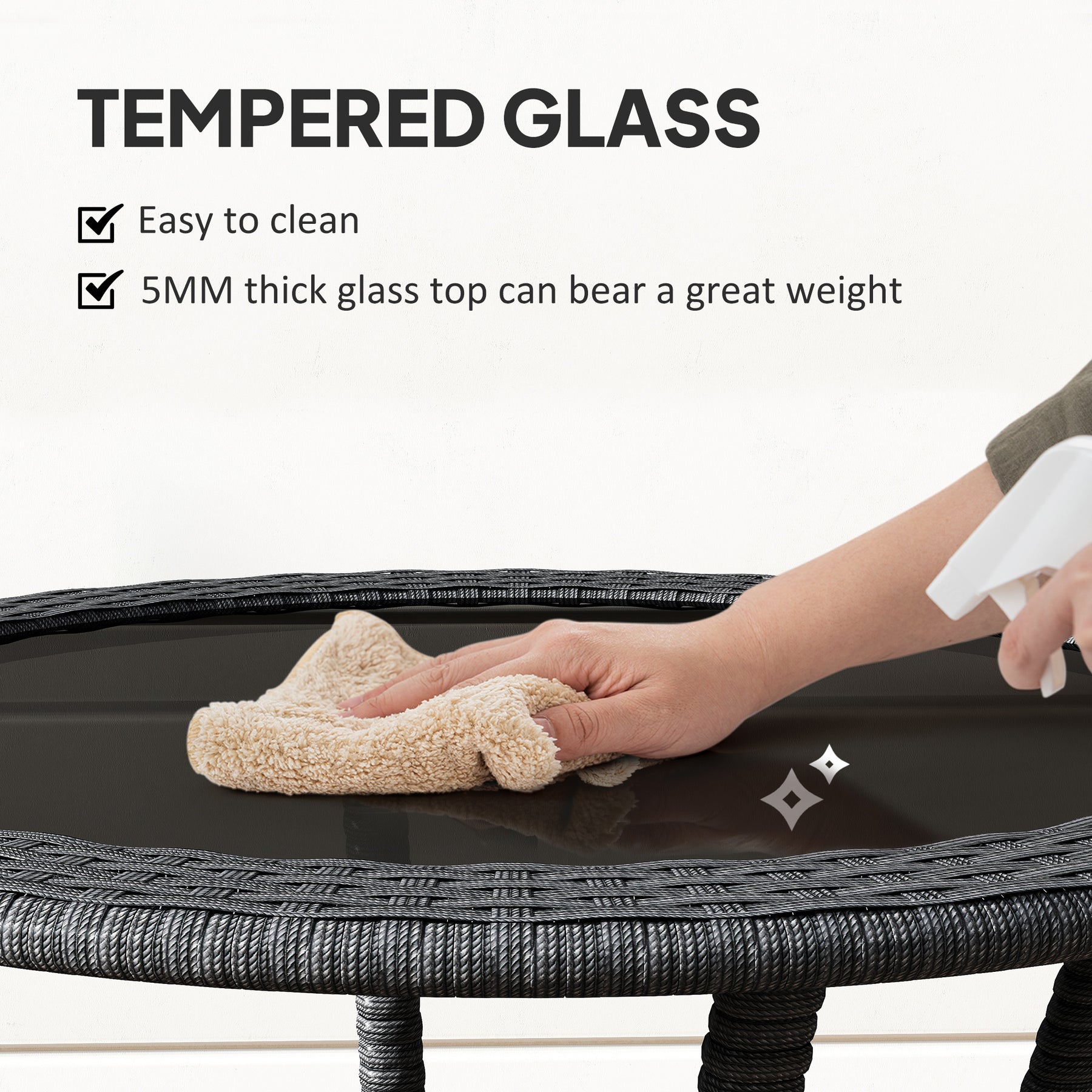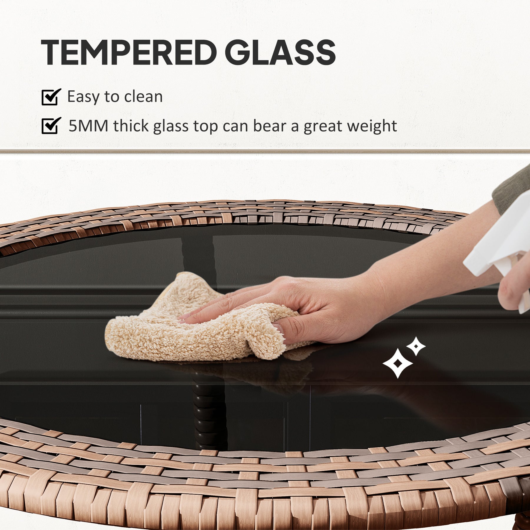 Want an outdoor table and maintenance made easy? With a sleek glass surface and tropical rattan motifs on its frame, the Outsunny outdoor coffee table makes low-maintenance stylish. Multi-use, it can be a patio side table for drinks, an outdoor dining table for when friends visit, and a couch table to play a board game together. The tempered glass surface wipes clean, and the hand woven PE wicker makes it tough enough to endure water without issue. Get out, get comfy, get Outsunny.