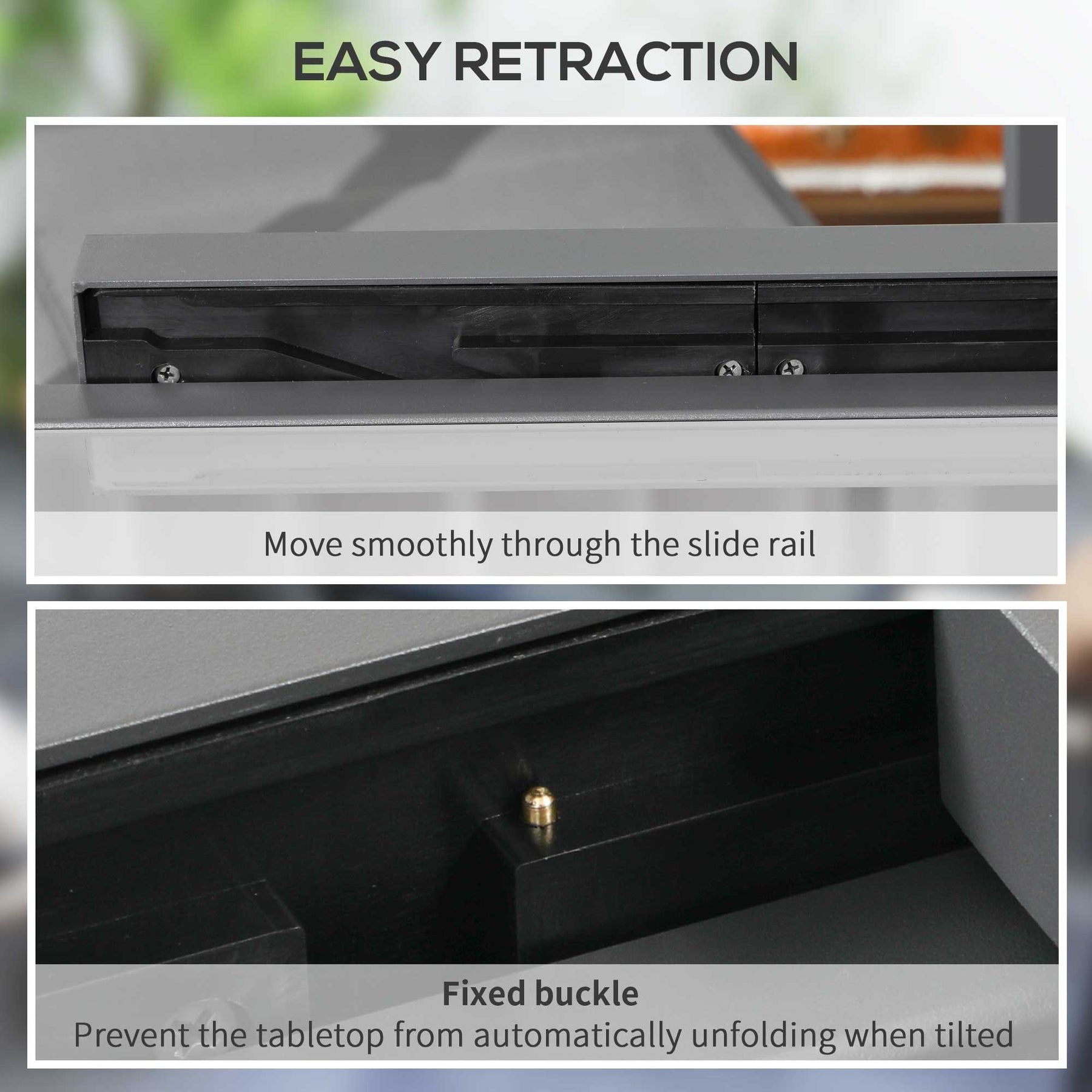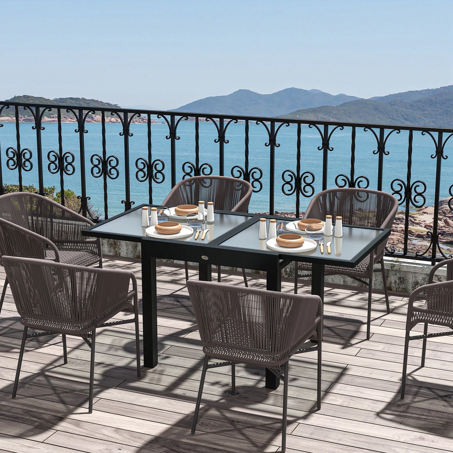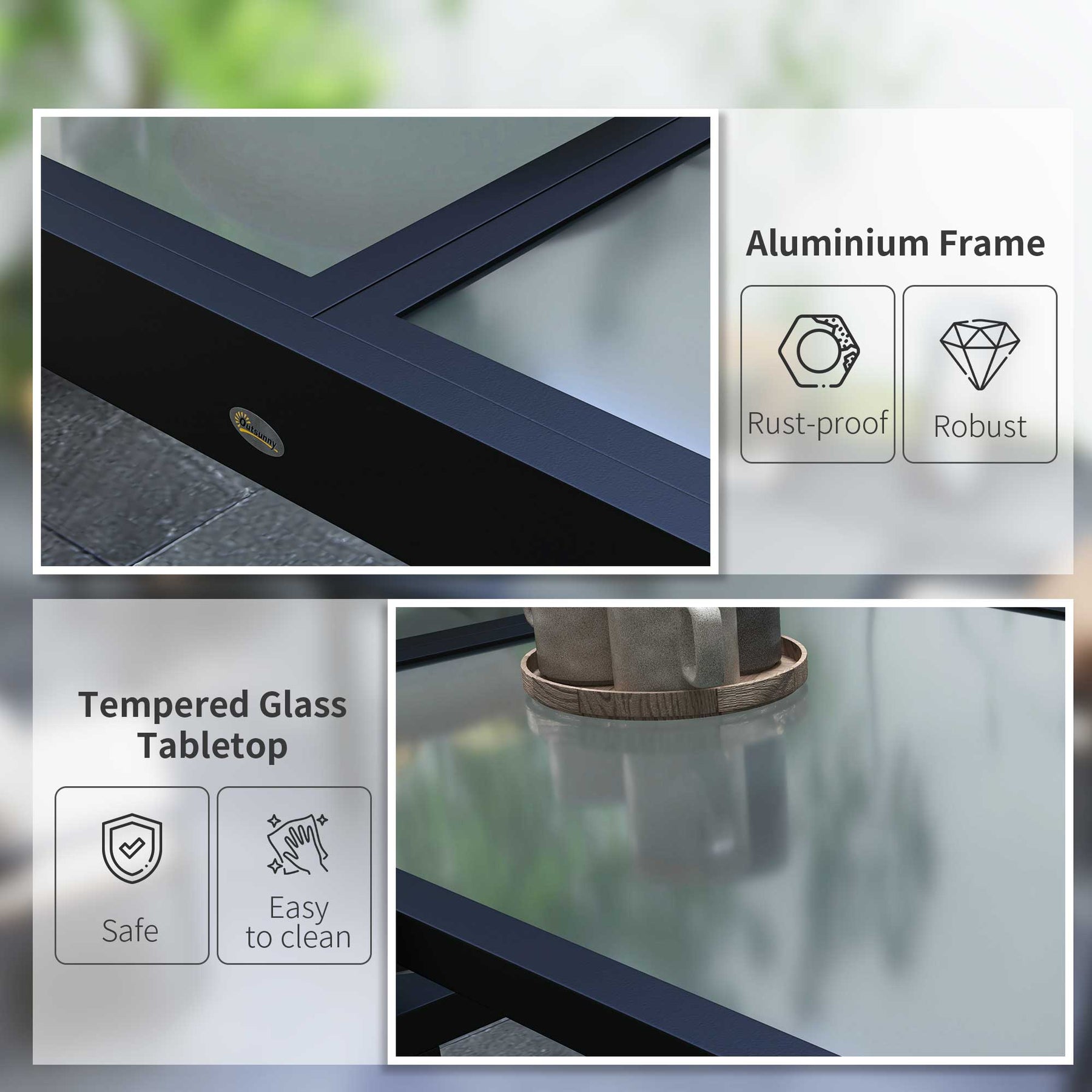 Unexpected guests? No need to worry giving them a place to dine from outdoors. Grab this Outsunny expandable table. Expand from 31.5" (80 cm) to 63" (160 cm) to meet your different needs. The sturdy aluminum frame with quality tempered glass table top is stable and easy to maintain. Add enduring beauty, style, and grace to your environment with this patio table for any outdoor living space like the backyard, front yard, balcony, garden, or deck. Put some party into your patio with Outsunny.