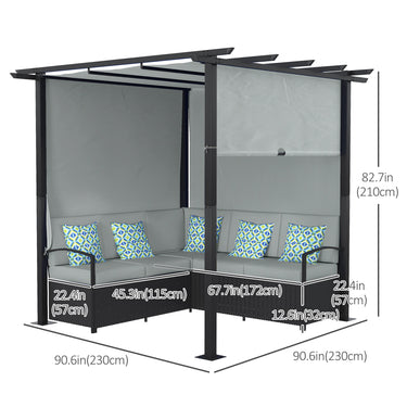 Brighten your backyard and make the exterior of your home just as inviting as the inside. This Outsunny cushioned rattan sofa with patio pergola is made of strong steel frame with all-weather PE rattan wicker. Excellent choice for your patio, poolside, or garden area. Decorative and functional, they create an inviting setting that you and your family will want to use all throughout the year. Note: Not recommended for use in bad weather (rain, snow, hail, etc.).