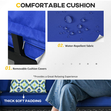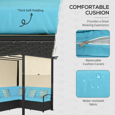 Outsunny Wicker Patio Furniture, Outdoor PE Rattan Sofa Set with Retractable Canopy Pergola, Shade Shelter for Deck, Pool, Garden, Terrace, Blue