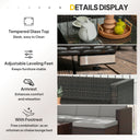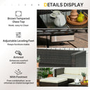 Outsunny 3 Pieces Patio Furniture Set with Cushions, Outdoor PE Rattan Wicker Conversation Corner Sofa Set with Glass Top Table and Adjustable Foot for Garden, Lawn, Cream White