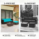 - • 3 pieces rattan wicker set features a three-seat sofa, a footstool, and a matching table for stylish outdoor living