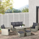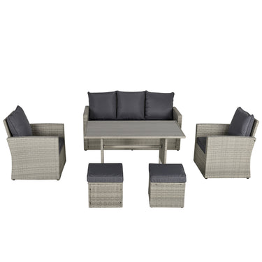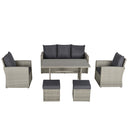 - • 6 pieces patio rattan dining table set indudes 2 single sofa, 1 three seat sofa, 2 footstool and 1 dining table