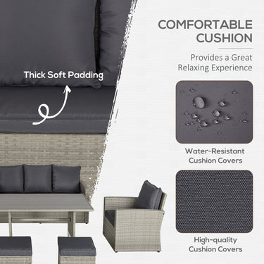 Outsunny 6 PCS Rattan Outdoor Dining Set Patio Dining Table and Chair Set with Plastic Wood Top Dining Table, Cushions, Grey