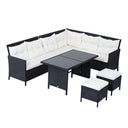 - • 6 pieces of rattan patio set include 3 corner sofas, 1 table and 2 ottomans for max 9 seats