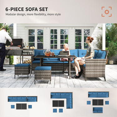 Brighten your backyard with Outsunny's 6-Piece outdoor conversation set and make the outside of your home just as inviting as the inside. Includes 3 corner sofas, 1 table and 2 ottomans, which you can rearrange accordingly.