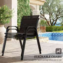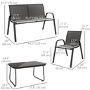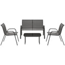 Transform your outdoor space with the four pieces patio furniture set from Outsunny. This set features a two-seater outdoor sofa, two stackable armchairs, and a sleek coffee table with a tempered glass top, offering both style and comfort. Crafted with a powder-coated steel frame and breathable mesh fabric, the Outsunny backyard furniture promises leisurely lounging and effortless flair for any patio, balcony, or garden.