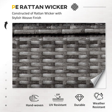 Bring a new lease of life into your garden with this dining set from Outsunny. Formed of four pieces, each of the two chairs, the two-seater sofa and the matching table are built with a galvanized steel frame for a tough, steady and durable structure, with PE wicker wrapped around tightly for protection against mild rain and UV fading. Wide and long in size, the seats give plenty of room for you to relax, with padded seat cushions for continual comfort and high backs and armrests for support.