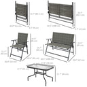 Outsunny Outdoor 4 Pieces Patio Furniture Set, Garden Set with Two Foldable Armchairs, a Loveseat & Glass Top Table, Mixed Brown