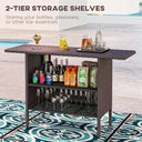 Outsunny Bar Height Outdoor Rattan Table, Patio Wicker Bar Table with 2 Storage Shelves, 55.1" x 18.5" x 37", Brown