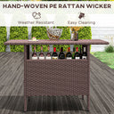 Want a high top patio table and maintenance made easy? The outdoor bar table made of steel frame with powder-coated finish and hand-woven PE rattan wicker surface, the Outsunny high top table makes low-maintenance stylish makes it tough enough to endure water without issue. Featuring convenient storage shelves, it can be a patio bar table for drinks, or an outdoor dining table for when friends visit. Get out, get comfy, get Outsunny.