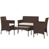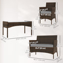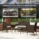 Outsunny 4 Pieces Wicker Outdoor Balcony Furniture Set Rattan Patio Furniture Set with Loveseat Chairs Glass Coffee Table Beige