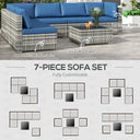 Outsunny 7pc Garden Wicker Sectional Set w/ Tea Table Patio Rattan Lounge Sofa Outdoor Deck Furniture Blue