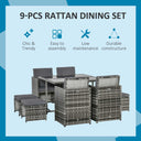 Outsunny 9 Pieces Patio Wicker Dining Set, PE Rattan Garden Sectional Sofa Outdoor Space-Saving Furniture Sets, White