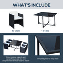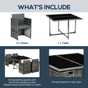 Outsunny 5 Pieces Wicker Patio Dining Set Outdoor Furniture Set with Removable Cushions, Glass Top Dining Table, PE Rattan Conversation Set for Garden Poolside Backyard, Cream