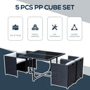 - • 5pcs rattan patio dining set includes 1 table and 4 sofas for indoor and outdoor use