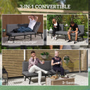 Elevate your outdoor living with the Outsunny 3-in-1 patio sofa! Designed for versatility, it effortlessly converts from a spacious three-seater balcony couch to a 5-position adjustable reclining patio lounger or an outdoor loveseat with a convenient fold-down table. Thick 25D foam cushions offer comfort and support. Excellent for backyard, porch, balcony and garden, this multifunctional patio furniture brings style, comfort, and practicality to your outdoor space.