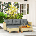 Outsunny 3 Piece Patio Furniture Set, L-Shaped Outdoor Furniture Conversation Set with Wood Top Coffee Table, Light Grey